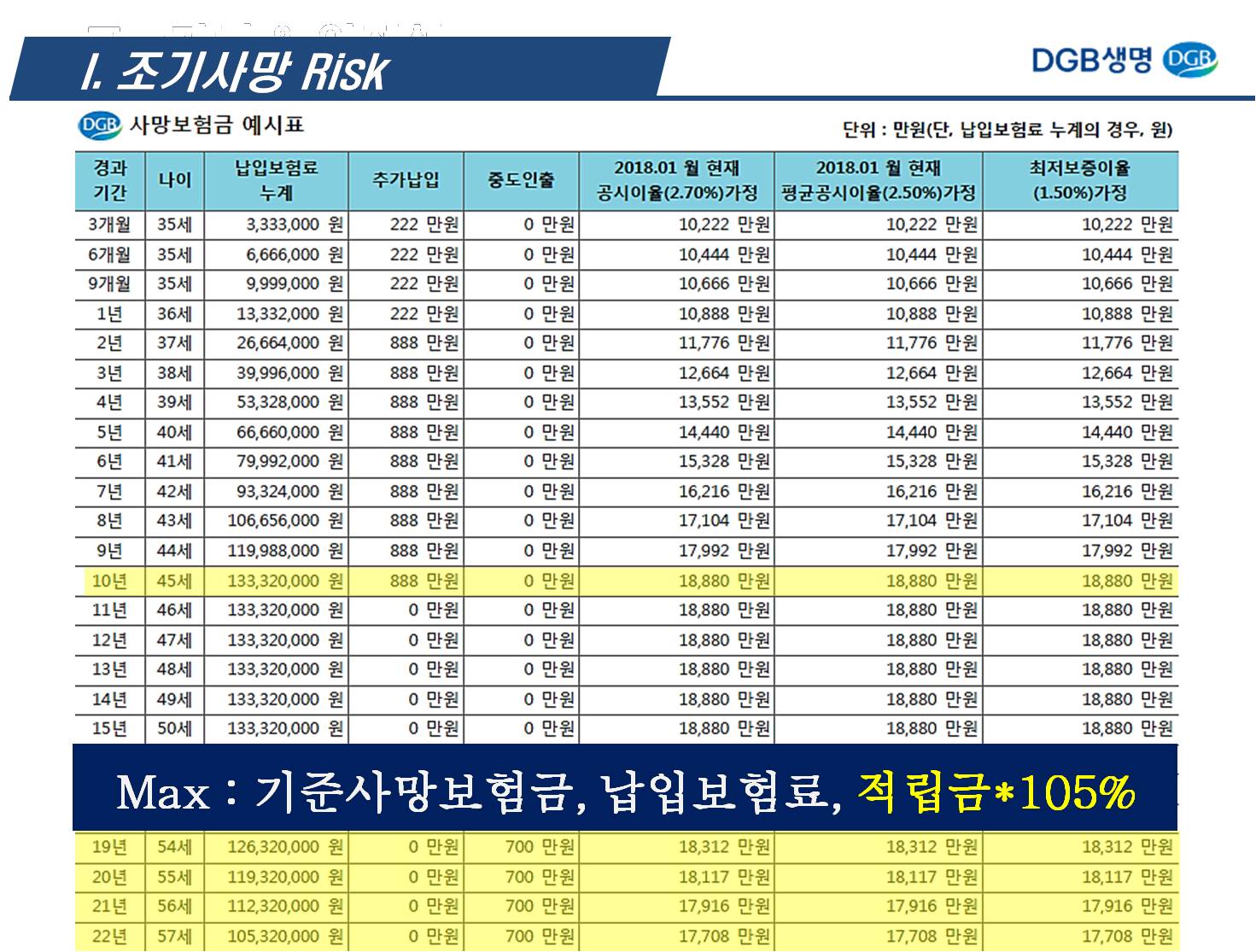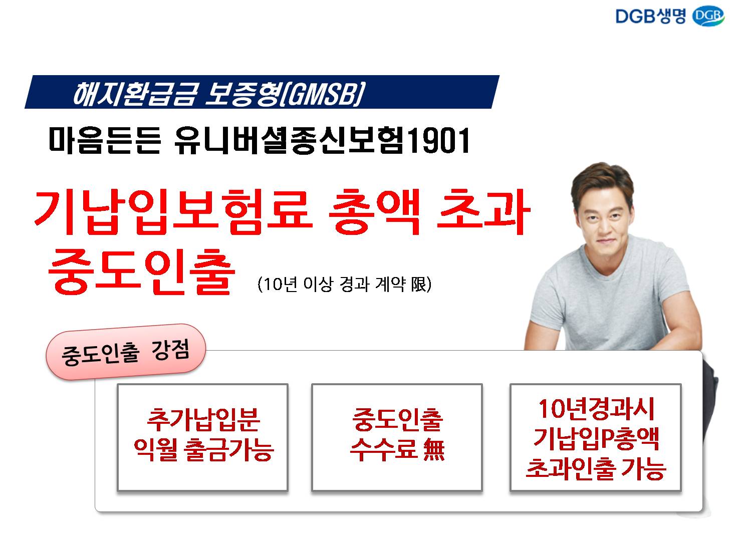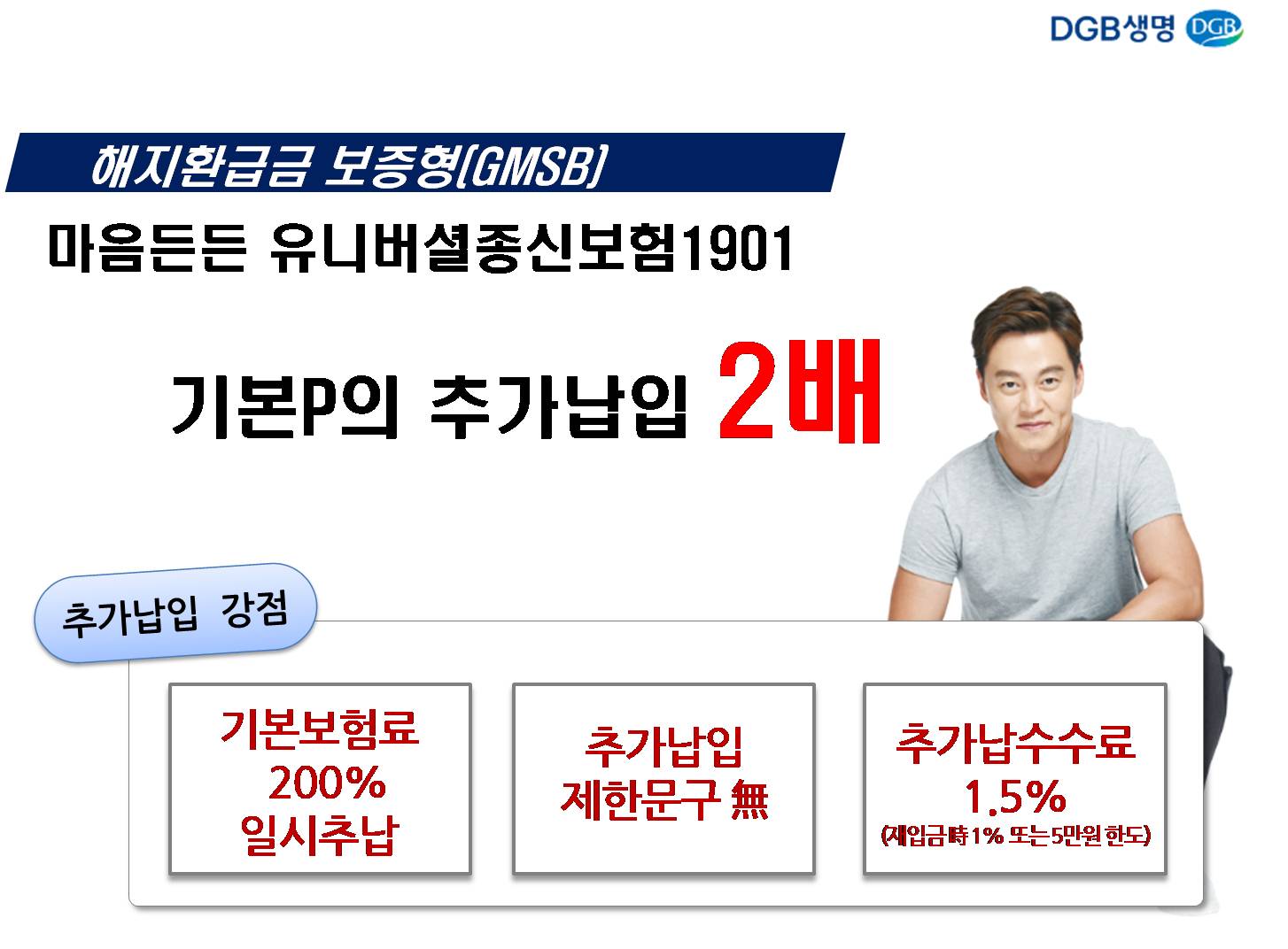 매주 각보험사 교육 팀장님들이 오셔서 교육을 해주십니다. 두달에 한번쯤 보는 교육 팀장님들인데... 이번에 다시 만난 DGB생명 교육 팀장님이 현재 판매되고 있는 종신보험중에 최저보증이율 3%, 추가납입 200%, 이자까지 중도인출 가능한 보험은 DGB생명 마음든든 유니버셜종신보험만 있다고 자랑을 하시네요.