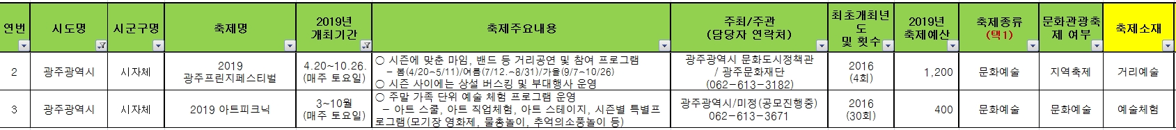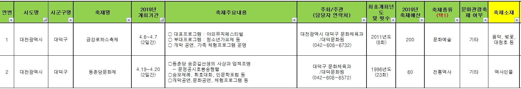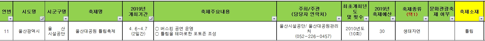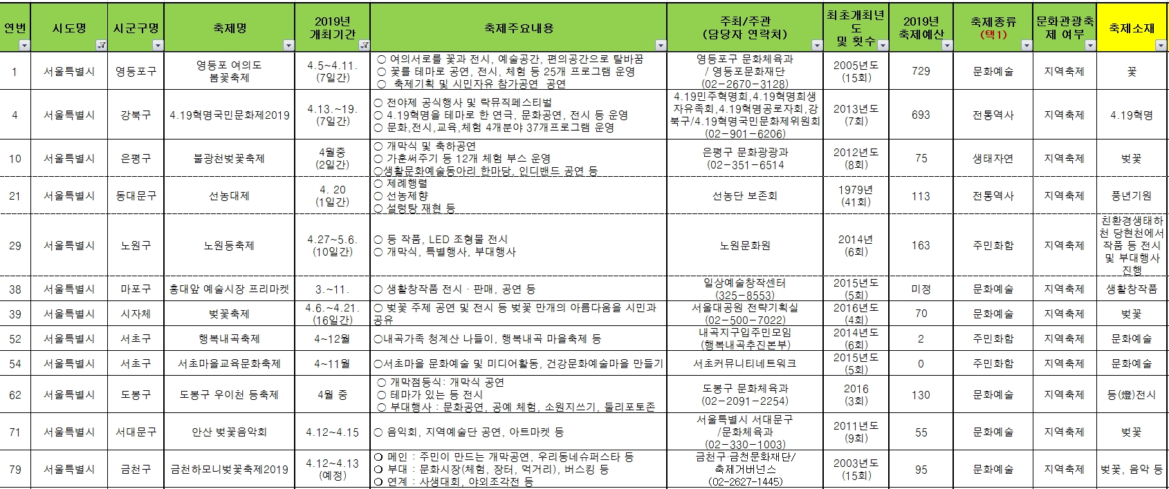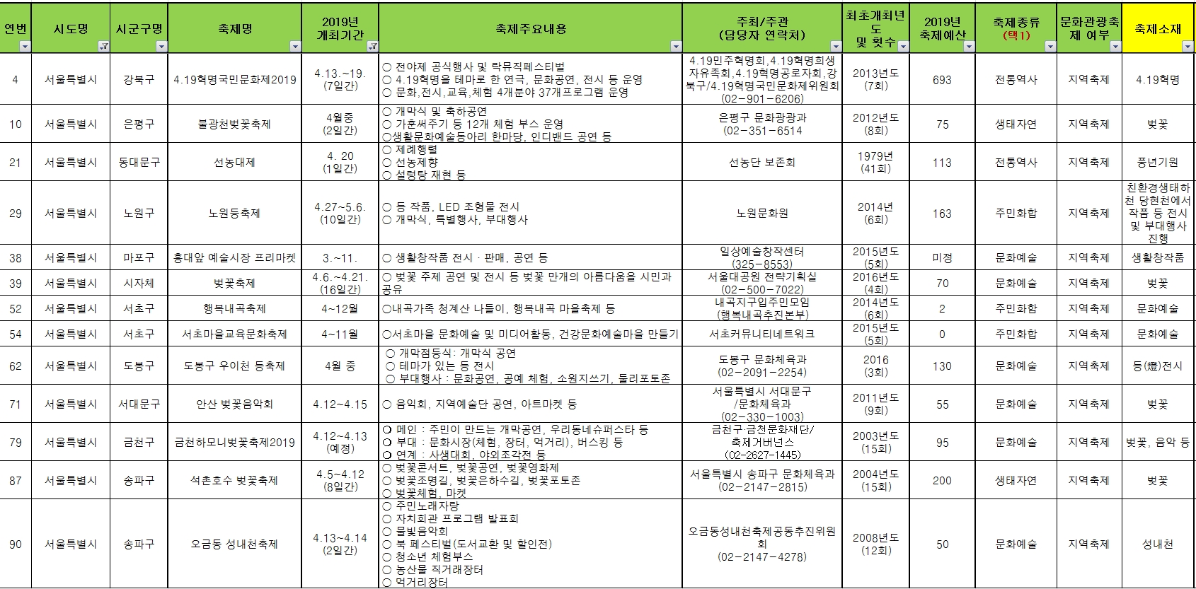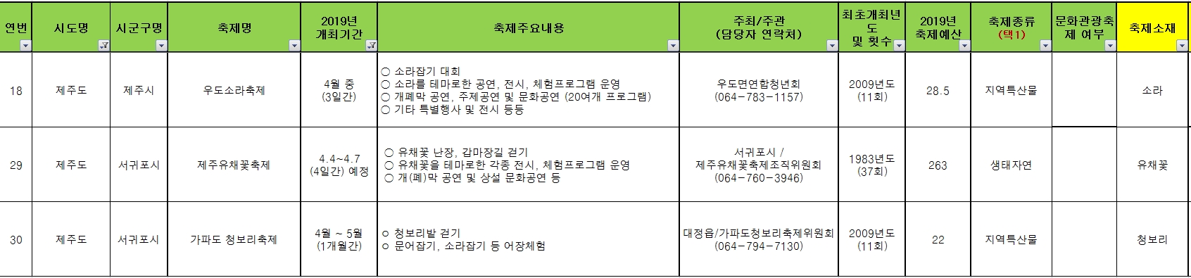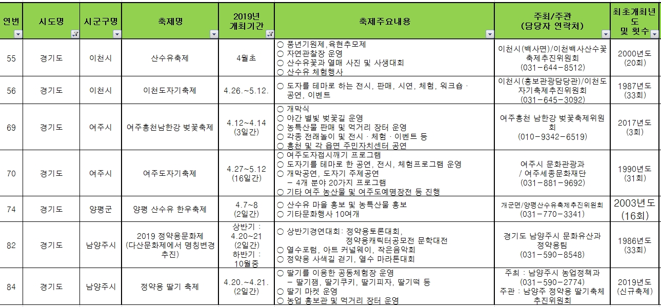 아래 자료는 문화체육관광부 홈페이지에서 다운 받아 4월달 축제만 정리한 자료입니다.
