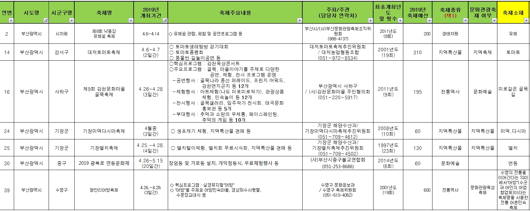 2019년 4월 전국 지역축제 개최계획 총괄표.xlsx