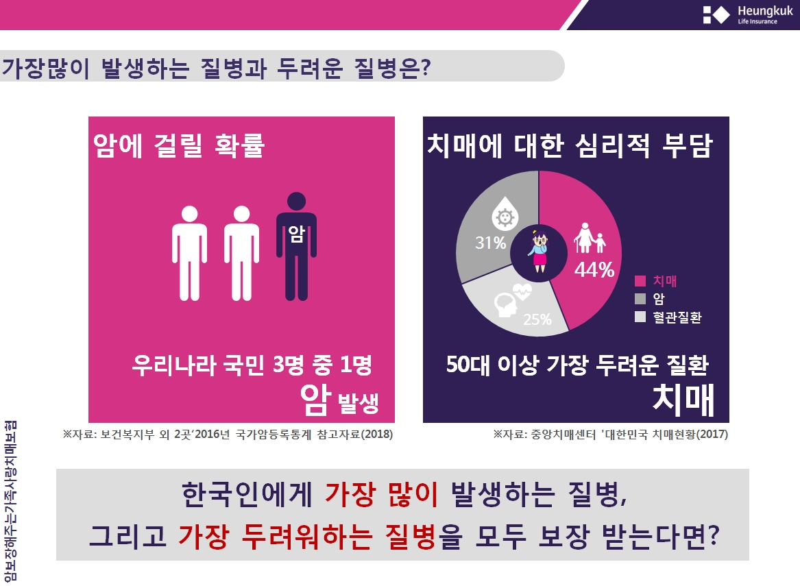 치매간병보험의 선두주자 흥국생명에서 암보장해주는 가족사랑치매보험을 소개합니다.