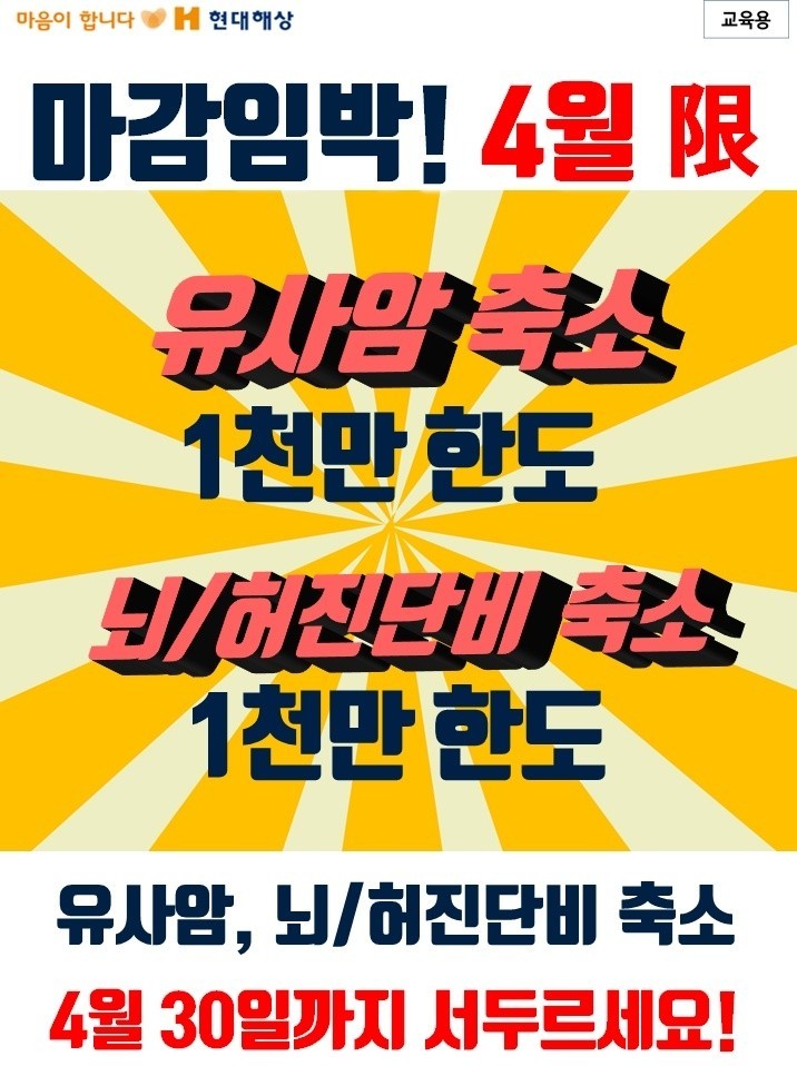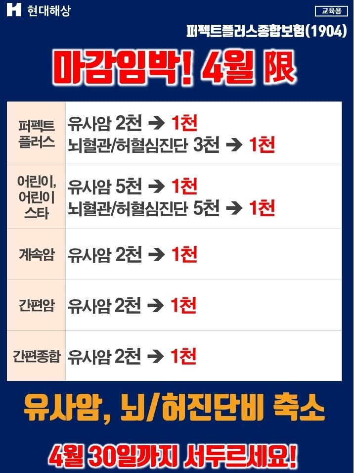 기한은 이번달 말!!! 4월 30일 이전까지는 현행대로 판매하고 다음달부터는 보장이 축소됩니다.