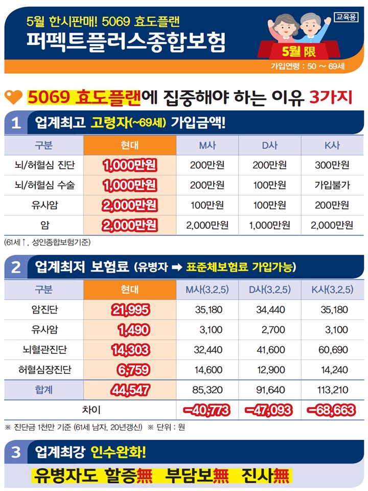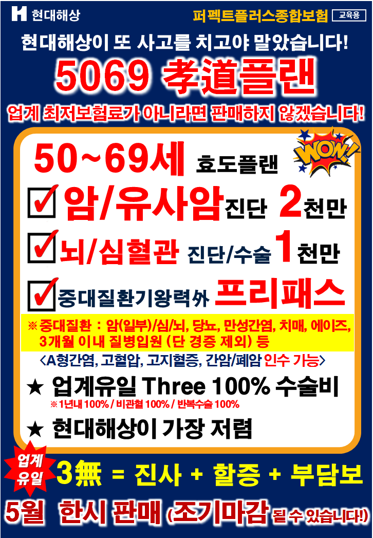 현대해상에서 가정의달 5월을 맞아 미쳤습니다. 50세부터 69세 부모님을 대상으로 효도플랜을 출시했습니다.