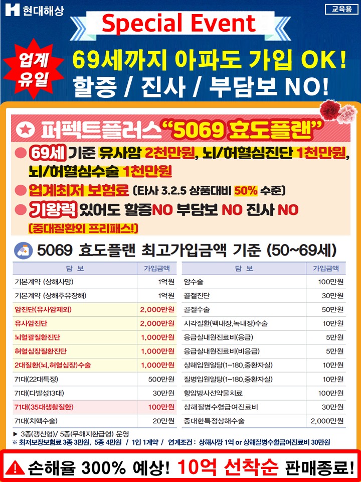 5월한시 판매 상품으로 예상 손해율이 300%로 10억 선착순 판매하고 조기에 판매 종료됩니다.