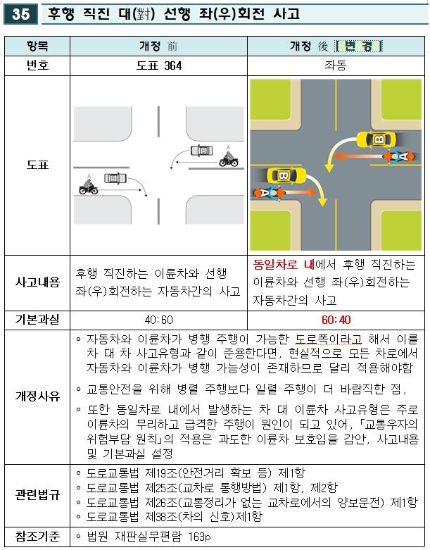 그리고 응급차는 무조건 양보 하시구요. 이륜차(자전거) 운전하시는분들도 과실이 높아졌으니 항상 안전운전 하세요~~ 감사합니다.