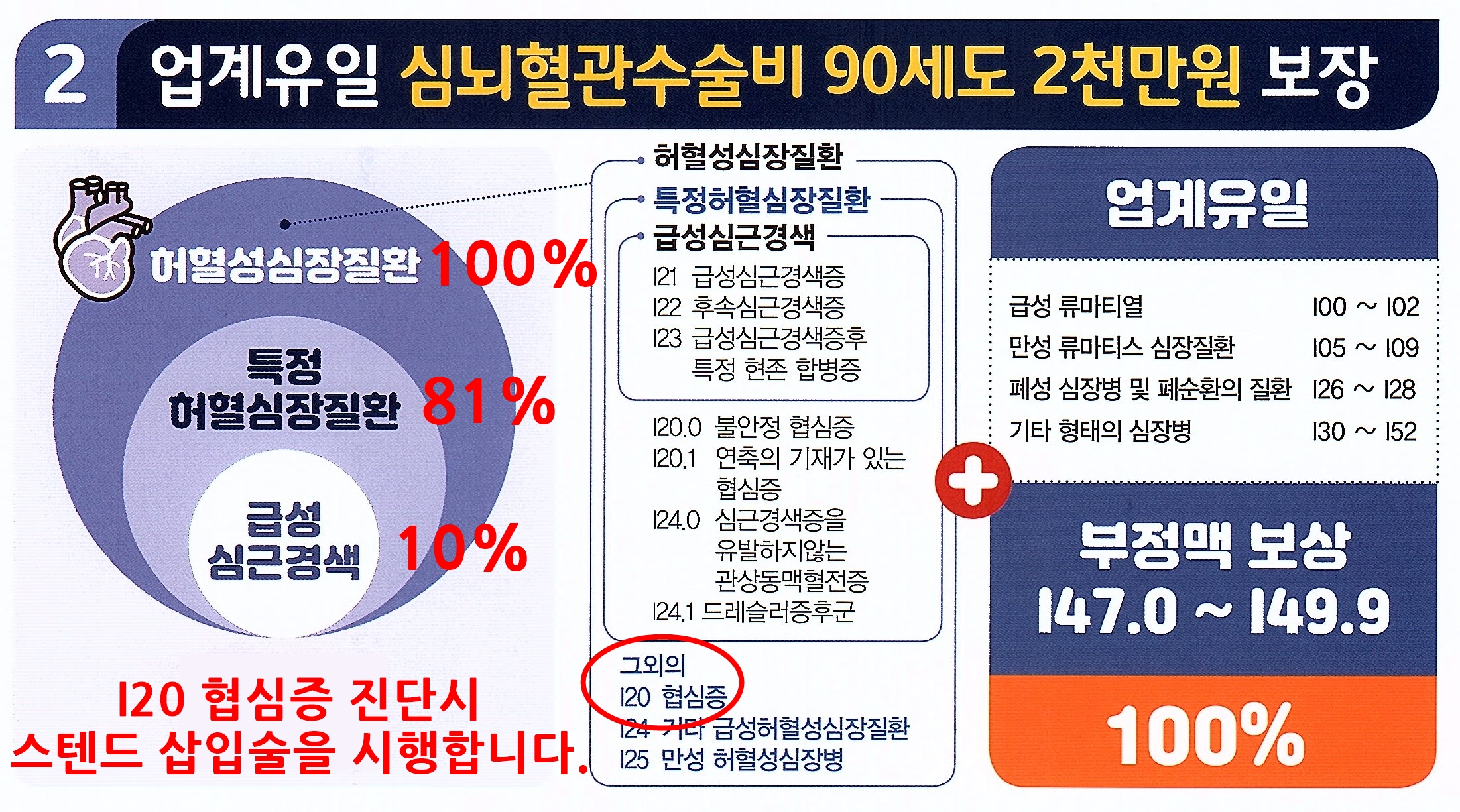 2019년 8월 현재 판매되고 있는 모든보험 상품중에 진단비는 허혈성심장질환 진단까지만 보장이 되고, 수술비는 심장질환까지 보장이 됩니다. (현대해상 유일!)