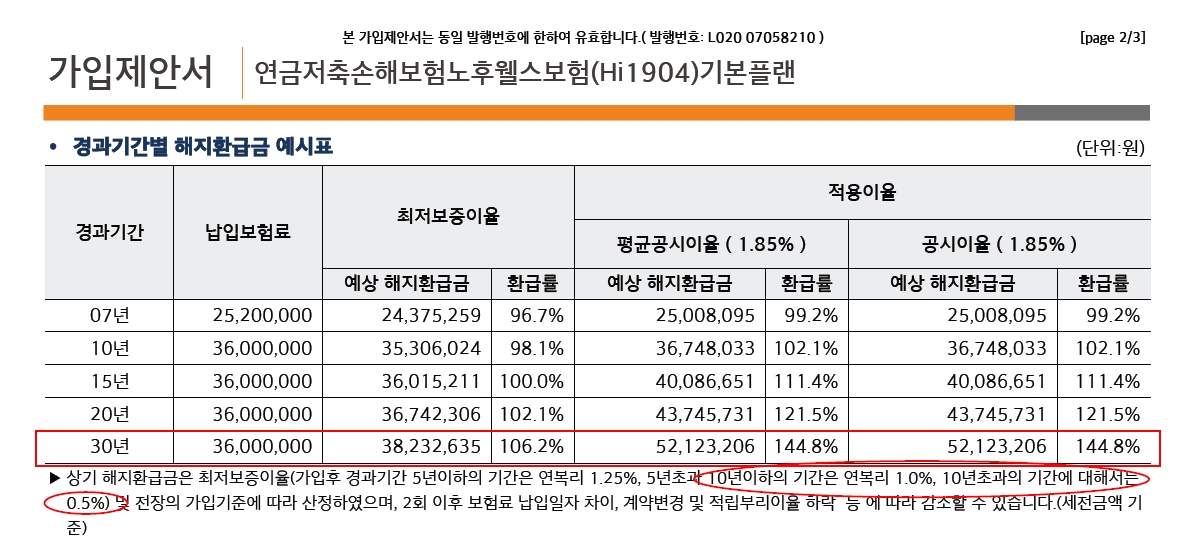그런데... 연금저축보험은 보험사에서 별로 판매하고 싶지 않은 상품으로 현재 공시이율도 1.85%로 낮고, 최저보증이율도 10년이하는 연복리 1%, 10년이상은 연복리 0.5%만 보증하며, 연금 개시후 10년만 지급하는 상품으로 별로 메리트가 없어 보였습니다.