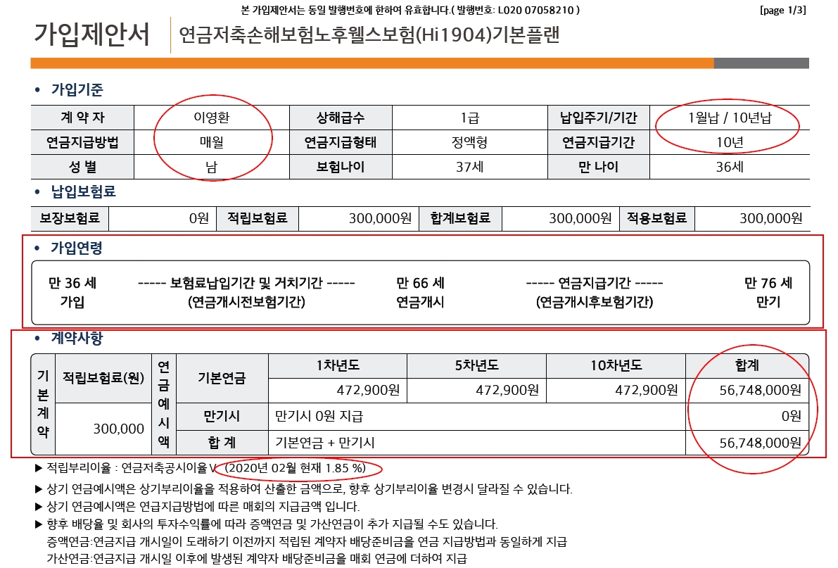 지난해에 연금저축보험이 만기가 되어 매년 40만원정도의 연말소득공제 혜택을 보았었는데... 그게 없어지니 아쉬워서 연말소득 공제가 되는 연금저축에 대해서 알아봐 달라고 해서 현대해상 연금저축 노후웰스보험 설계를 해 보았습니다.