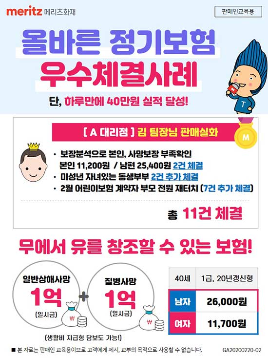 아래 이미지는 메리츠화재 전속 설계사님이 그동안 없었던 정기보험이라서 기존 고객님께 상품 소개를 하고 하루에 11건을 청약한 사례라고 합니다. 요즘엔 직접 만나지 않고, 모바일로 청약이 가능하여 코로나19 위험도 없이 간단하고 편하게 청약할 수도 있습니다. 문의 주세요~~