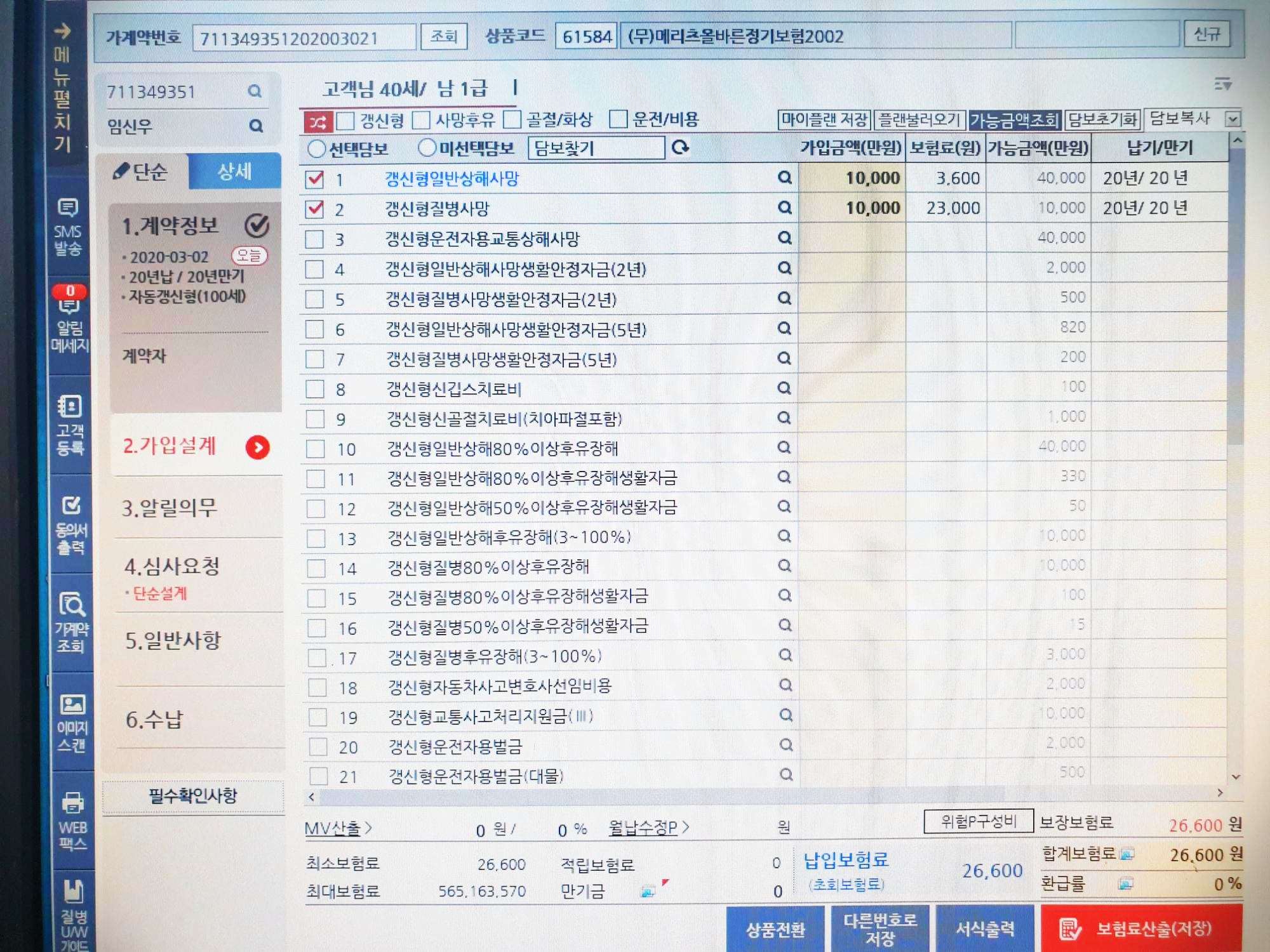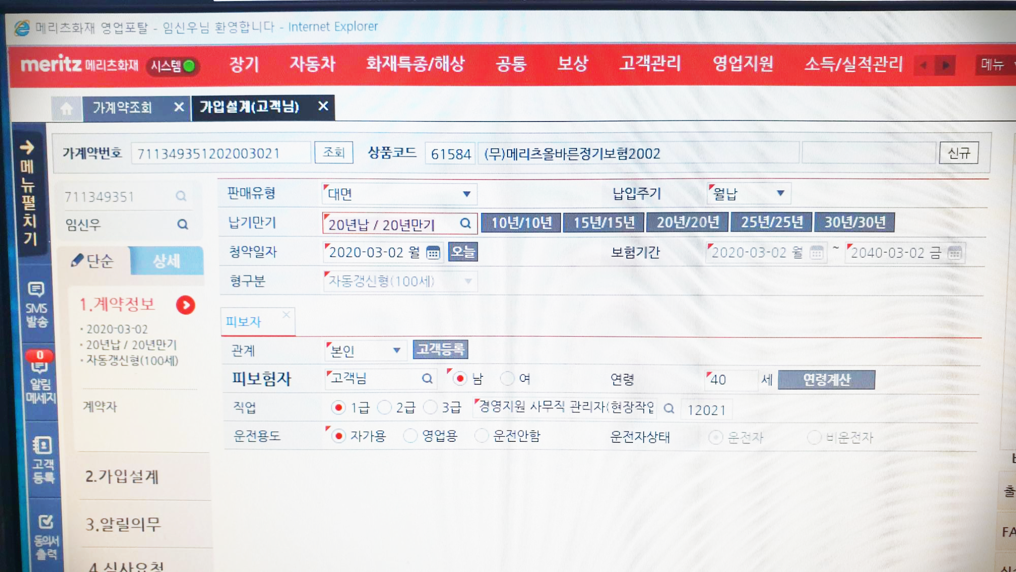 위 사진은 메리츠화재 전산 화면을 그대로 사진 찍었습니다.