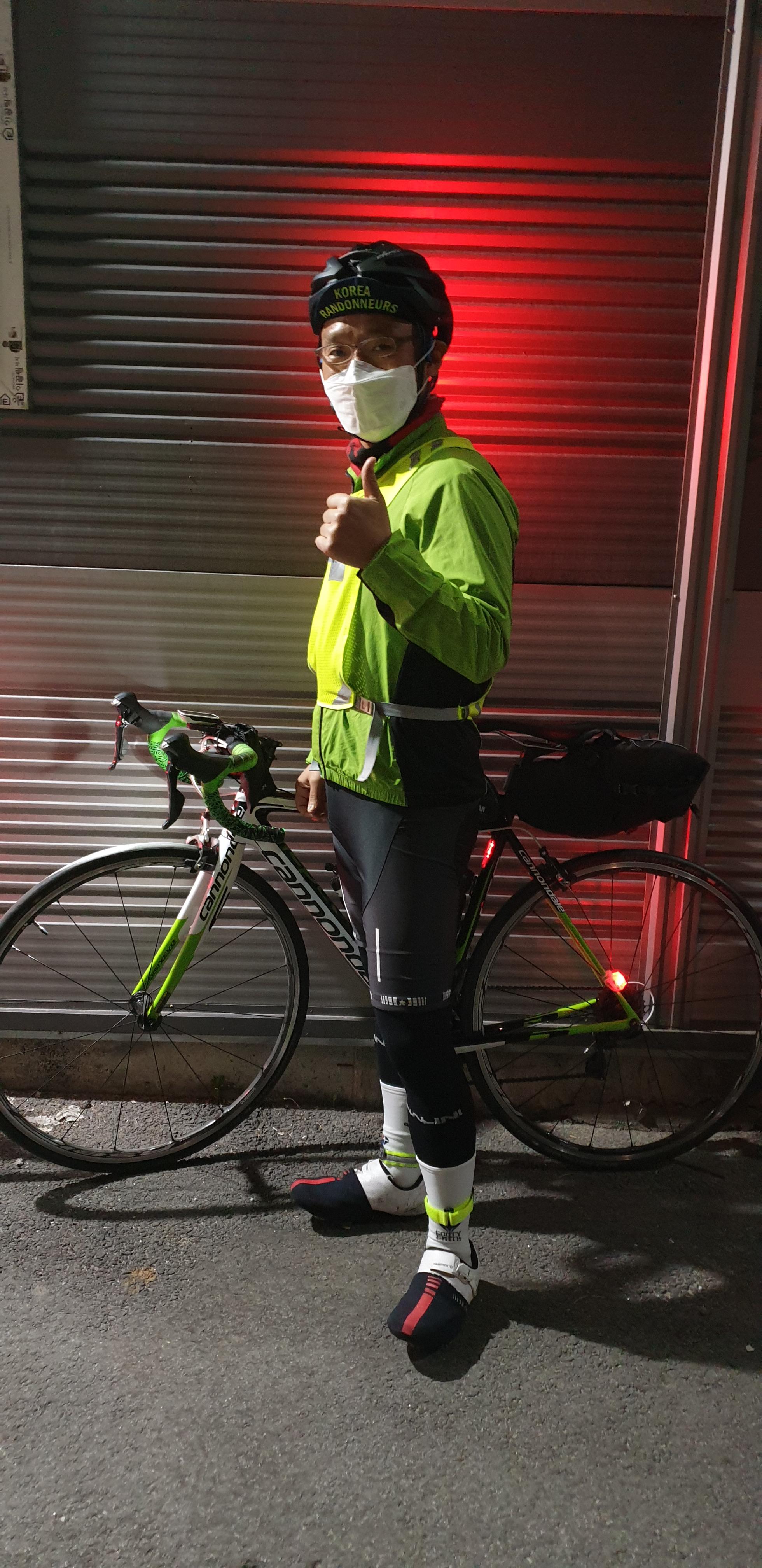 코로나19로 인증사진도 마스크 쓰고 협회 등록했네요. 참고로 맨 오른쪽 라이더는 당일 아침 6시에 출발해서 밤 9시에 도착한 랜도너입니다. 이 기운을 받아 우리는 출발 했네요~~~ ^^ㅎㅎㅎ