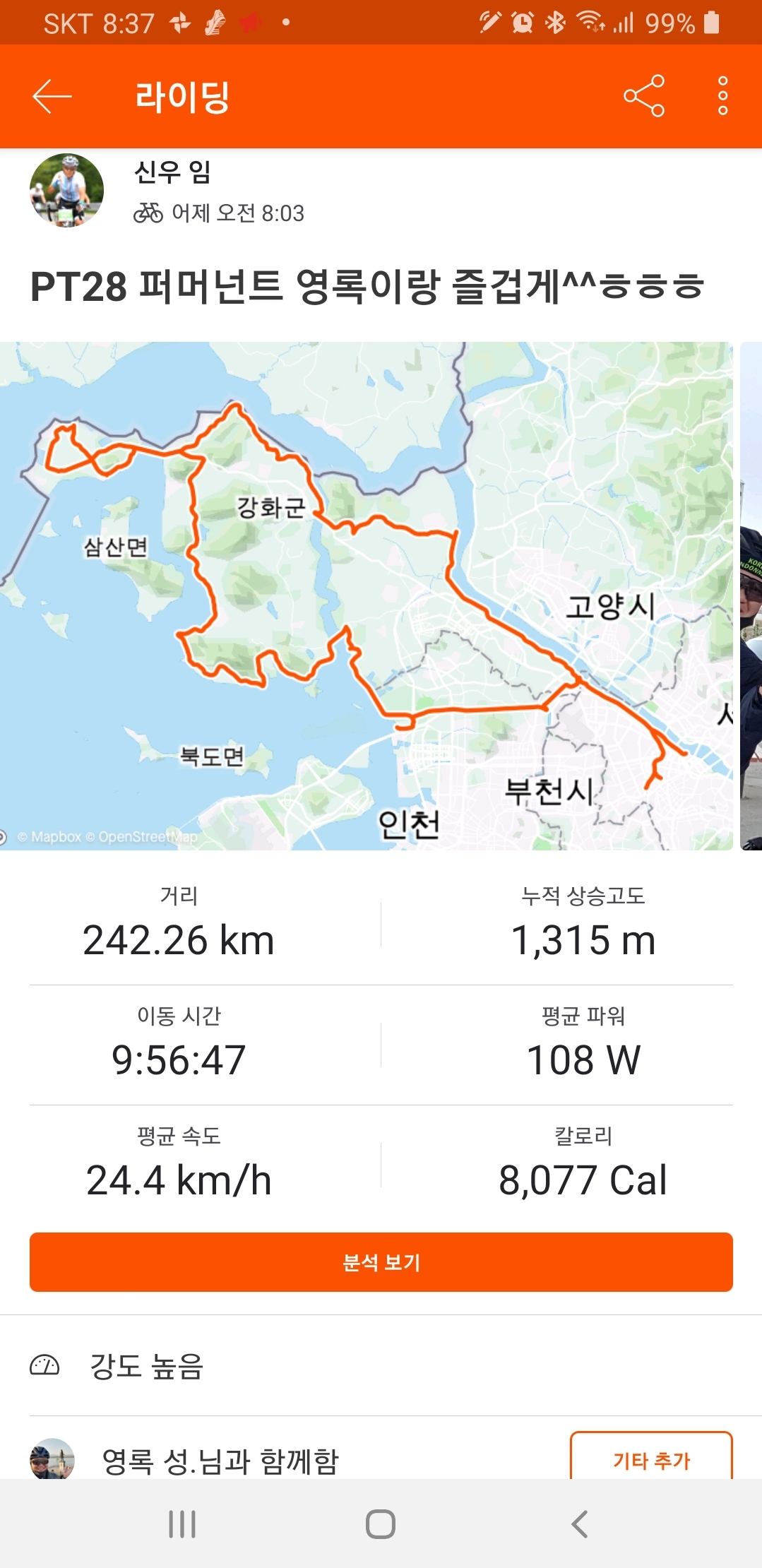 그런데 교동도를 갔다온 다음부터 놀라운 결과가 나오네요. 2016년부터 자전거를 타기 시작했고, 한창 몸이 올라오는 그다음해에 불의의 사고로 쇄골이 골절 되어... ...ㅠㅠ 그 다음부터는 빨리 타는것이 잘타는 것이 아니라 안다치고 타는것이 가장 잘타는 사람이라고 굳게 믿고 항상 조심하고 안전라이딩하고 있는데... 교동도를 갔다 온 후 남산 업힐, 삼막사 업힐, 그리고 서울대 업힐까지 계속 PR를 찍고 있어요~~^^ㅎㅎㅎ 기록이 좋으니 기분은 좋은데... 더 조심하고 있습니다. 사고는 몸이 좋을때 발생하는 경우가 많으니까요.