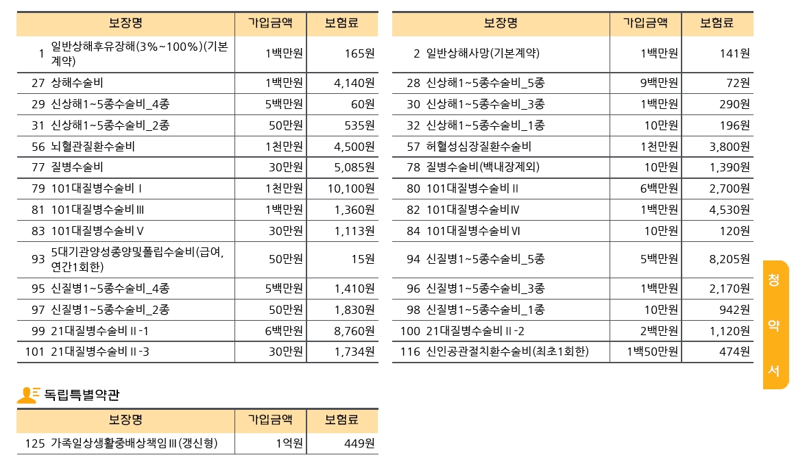 친구가 가입한 청약서의 보장부분만 캡쳐해서 공유합니다. 인수조건이 타사대비 월등히 적어서 보험료도 저렴하고, 수술비 보장도 좋습니다. 노후 준비는 수술비 플랜으로 준비하세요~~