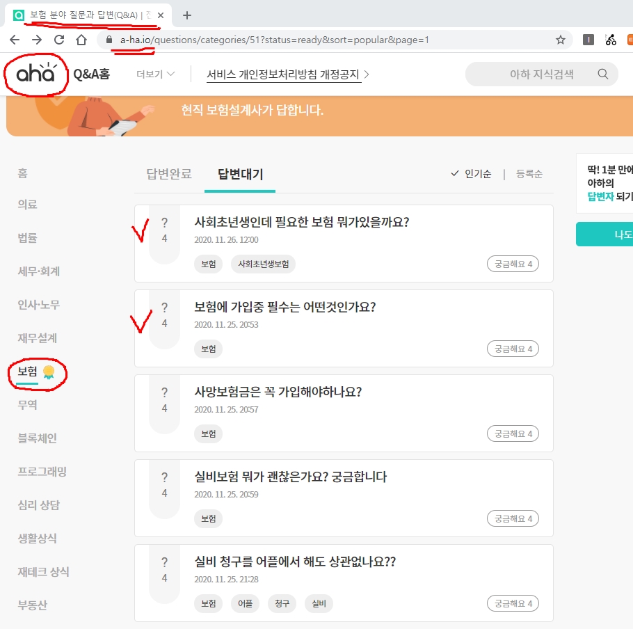 네이버 검색창에서 "아하"로 검색하면 전문 지식검색 사이트로 상단에 노출 됩니다.