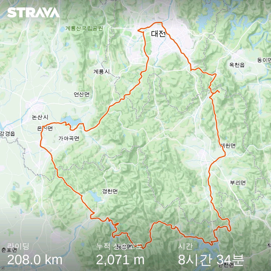 대전은 대부분 자전거 전용도로지만 우레탄 길이고 길에 페인곳이 조금 많은 편이라 빠르게 이동하는것이 힘들었습니다. 30키로까지는 천천히 달렸고, 대전을 벗어나 공도로를 타면서 길은 아주 좋았습니다. 차도 없고, 길도 잘 뚤려 있었습니다. 다시 대전 들어올때까지 길은 최고 입니다.