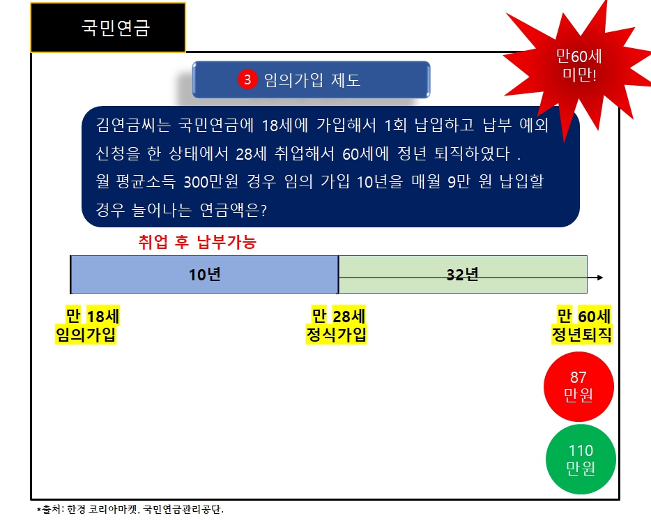 2 임의 계속 가입제도 : 만60세 이상만 가입 가능.